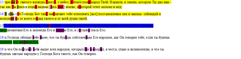 «Господу сказал ты ныне, что Он будет твоим Богом, и что ты будешь ходить путями Его и хранить постановления Его и заповеди Его и законы Его, и слушать гласа Его;»