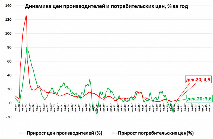 Когда цены производителей отстают от потребительских, значит они падают в реальном выражении.