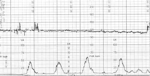 - регистрация поздних децелераций (возникающие через 30 секунд после начала маточного сокращения);
