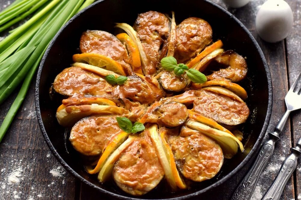 Существует много вариаций приготовления скумбрии. Рыбу можно жарить, запекать, готовить в целом виде или кусочками, дополнять различными овощами и специями. Предлагаем интересней рецепт, по которому скумбрия получается очень сочной, имеет отменный вкус. Рыбу запеканием в духовки, кусочки выкладываем на подушку из лука, прослаиваем лимоном. Сверху на куски наносим пикантный соус на основе сметаны.