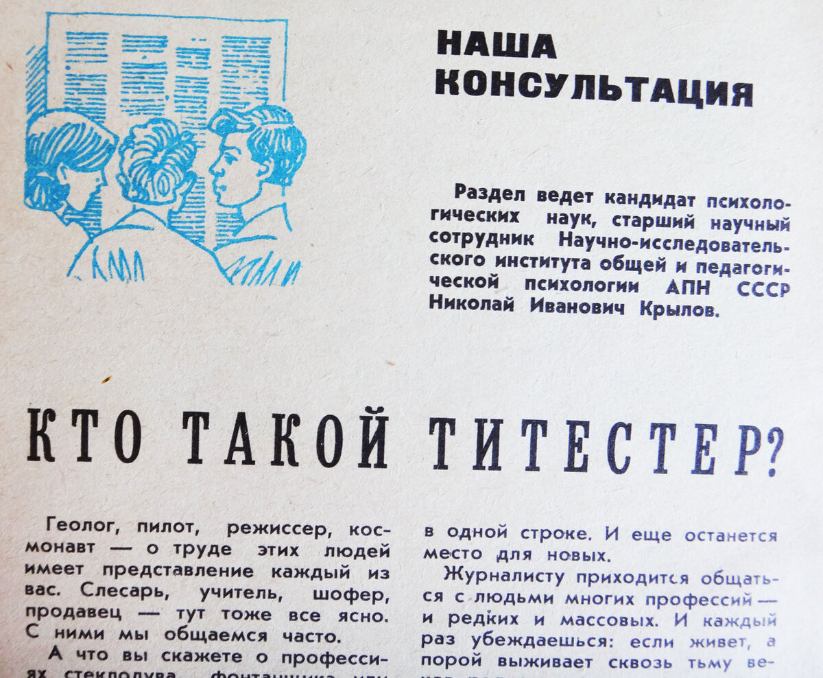 Среди них есть и старинные и новые так сказать и нисходящие и восходящие. Но если за словом шофёр миллионы людей понимают водителя автомобиля, то слово титестер вызывает непонимание и удивление. Знание всех представителей профессий может сильно пригодиться журналисту - необходимо общаться с людьми многих профессий - и редких и массовых.
