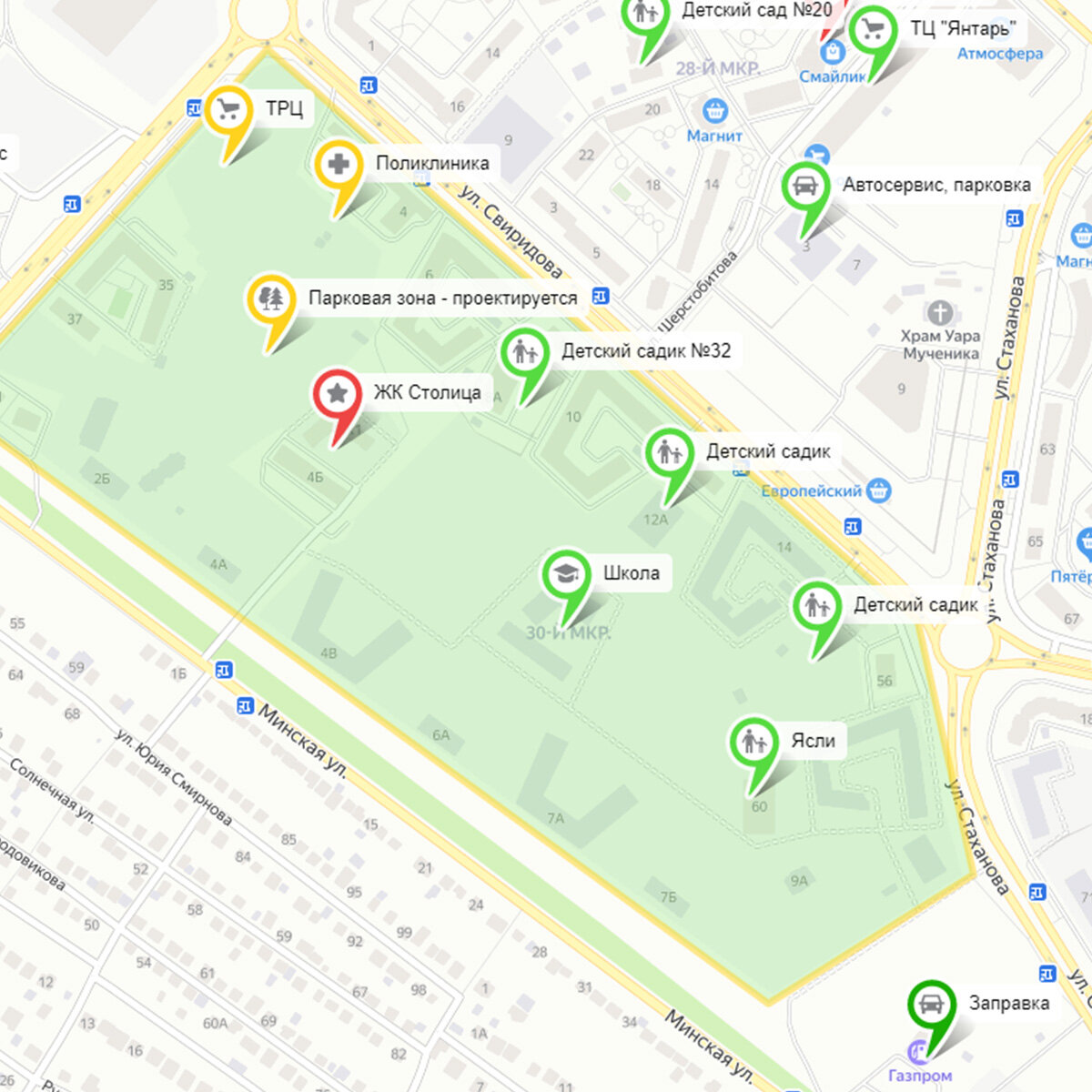 ЖК "Столица" - расположен в самом сердце микрорайона Европейский г. Липецка, поэтому большинство благоустройства и инфраструктуры будет в радиусе ста метров от дома. Что позволит существенно упростить жизнь и увеличить драгоценное личное время, которое раньше вы тратили на дорогу. Как им распорядиться уже решать вам.