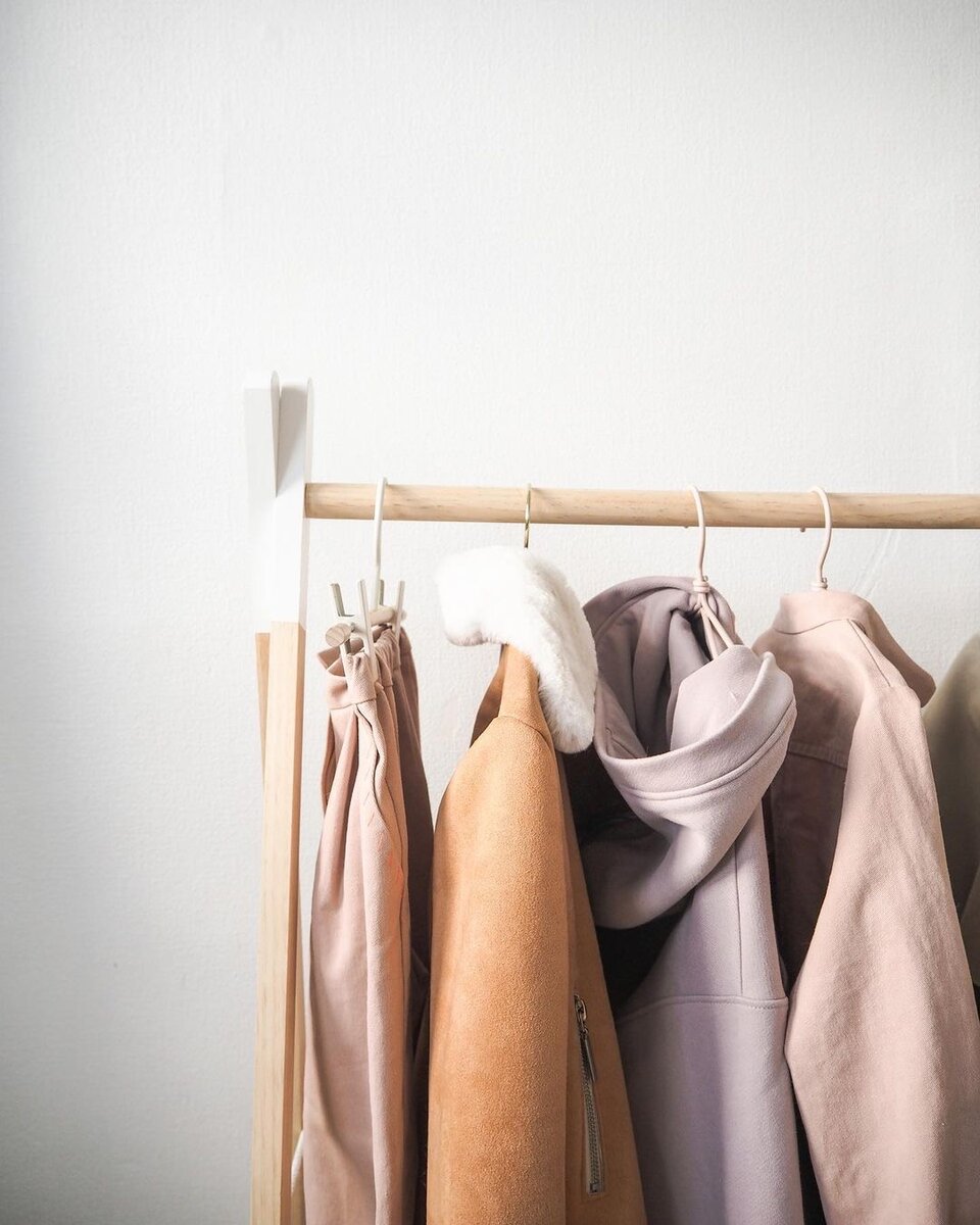 Розовый - более «космический», с воротником стойкой, клапанами, на кнопках, пояс со шлёвками.