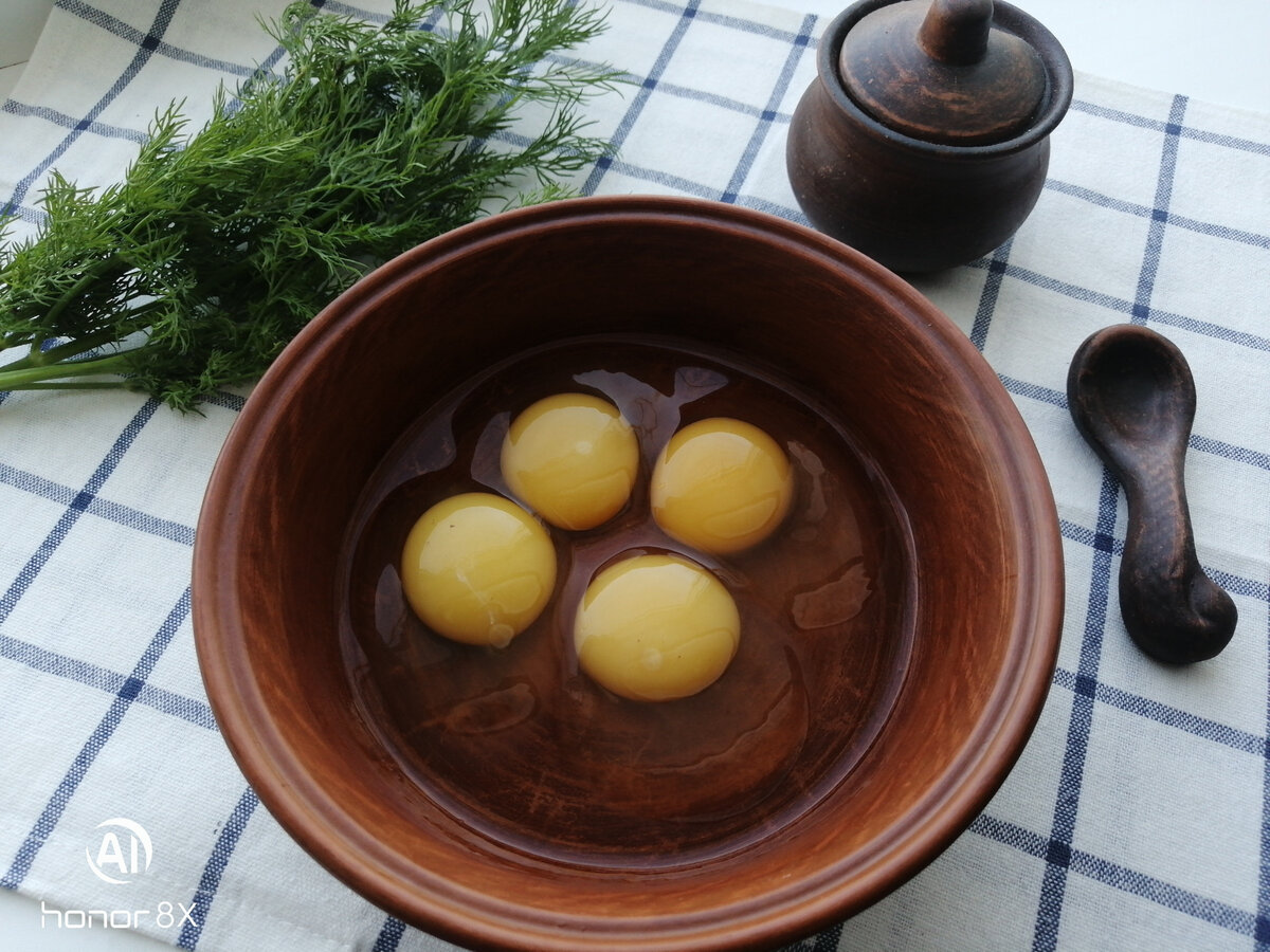 добавила к яйцам, посолила по вкусу и снова все перемешала вилкой.