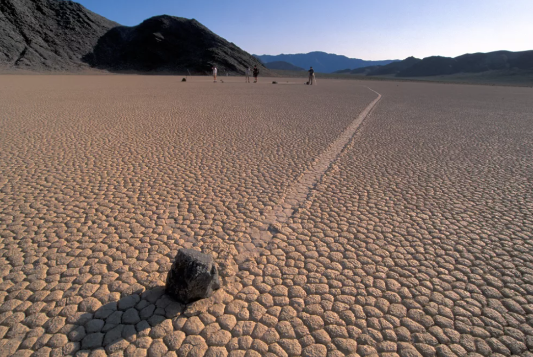 В США есть место, получившее название Долина смерти - это самое засушливое место в Северной Америке. Есть там высохшее озеро Рейстрек-Плайя, получившее известность благодаря тому, что там "живут" движущиеся камни.