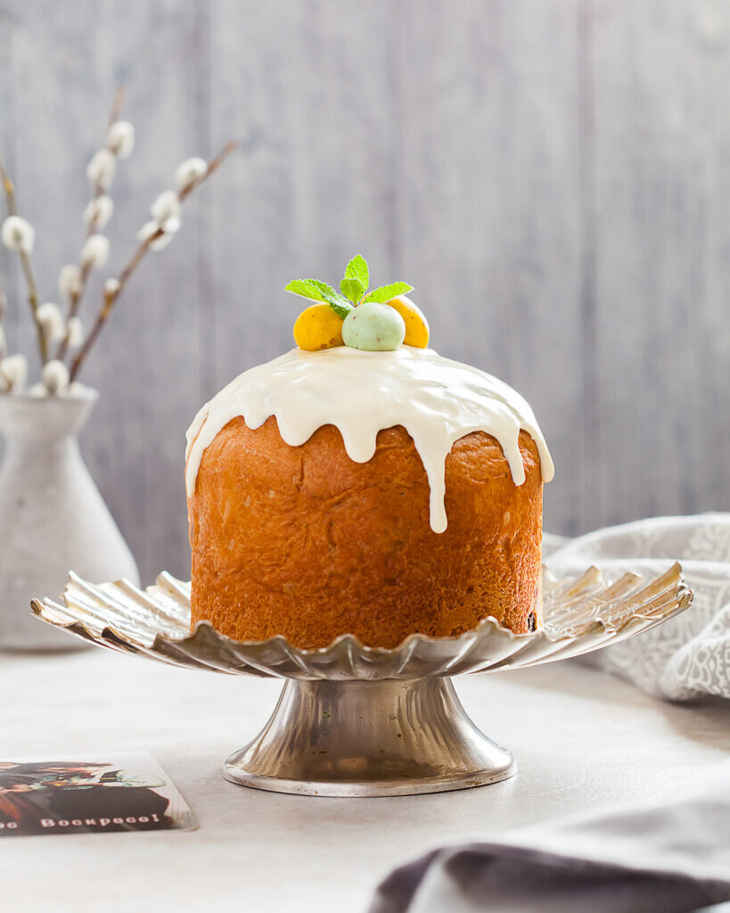 1 кг. муки 30 гр. сухих дрожжей 300 гр. сахара 350 мл. теплого молока 1 ч. л. соли 8 желтков 250 гр. размягченного сливочного масла 2 пакетика (по 1 гр.) ванилина 1 ст. изюма 1/2 ч. л. корицы 1/3 ч. л. мускатного ореха цедра половины лимона (исключительно на ваш вкус, я цедру не использую)