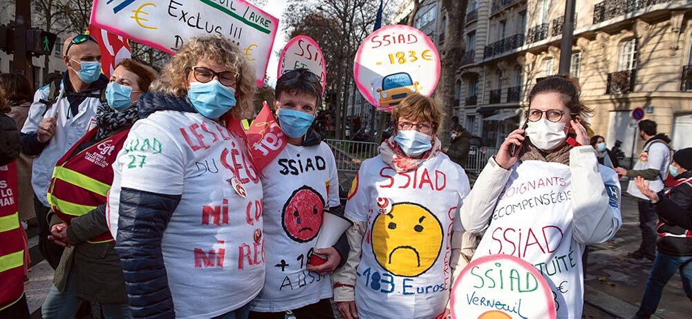 Работники медико-социального сектора рассчитывали, что в этот День общенационального протеста их возмущение всё же будет услышано. Их не включили в число категорий работников, которые получат дополнительную надбавку в размере 183 евро в соответствии с планом Ségur, и теперь они постоянно протестуют против этой несправедливости. Правительство поручило заняться этим вопросом Мишелю Лафоркаду (бывшему директору управления здравоохранения региона Новая Аквитания), чтобы приступить к экспертизе сектора. Между тем, секретарь ВКТ больницы Гийом-Ренье в Ренне (департамент Иль-и-Вилен) Родольф Верже опасается худшего: «У нас нет никакой уверенности в том, что этот доклад изменит положение дел в лучшую сторону. Поэтому мы продолжим устраивать протестные акции по защите интересов работников медико-социального сектора».
