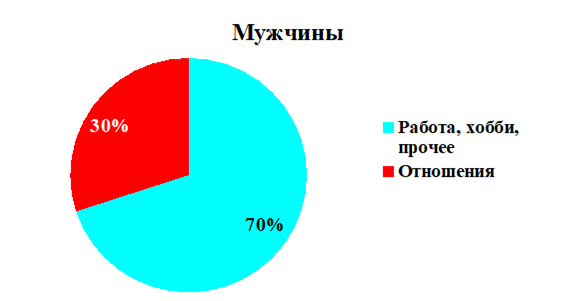 Многие психологи говорят, что в жизни женщины отношения важнее, чем для мужчины. И приводят в своих исследованиях разные цифры. Возьмём одно из таких исследований. В нём приводились следующие цифры: в жизни женщины отношения занимают до 70%, у мужчин – до 30%. Остальное – это работа, карьера, хобби и прочее. Мы не будем подвергать эти цифры сомнению, т.к. цифры не так важны. Просто на этом примере можно более наглядно продемонстрировать к чему данное соотношение приводит в жизни мужчин и женщин.