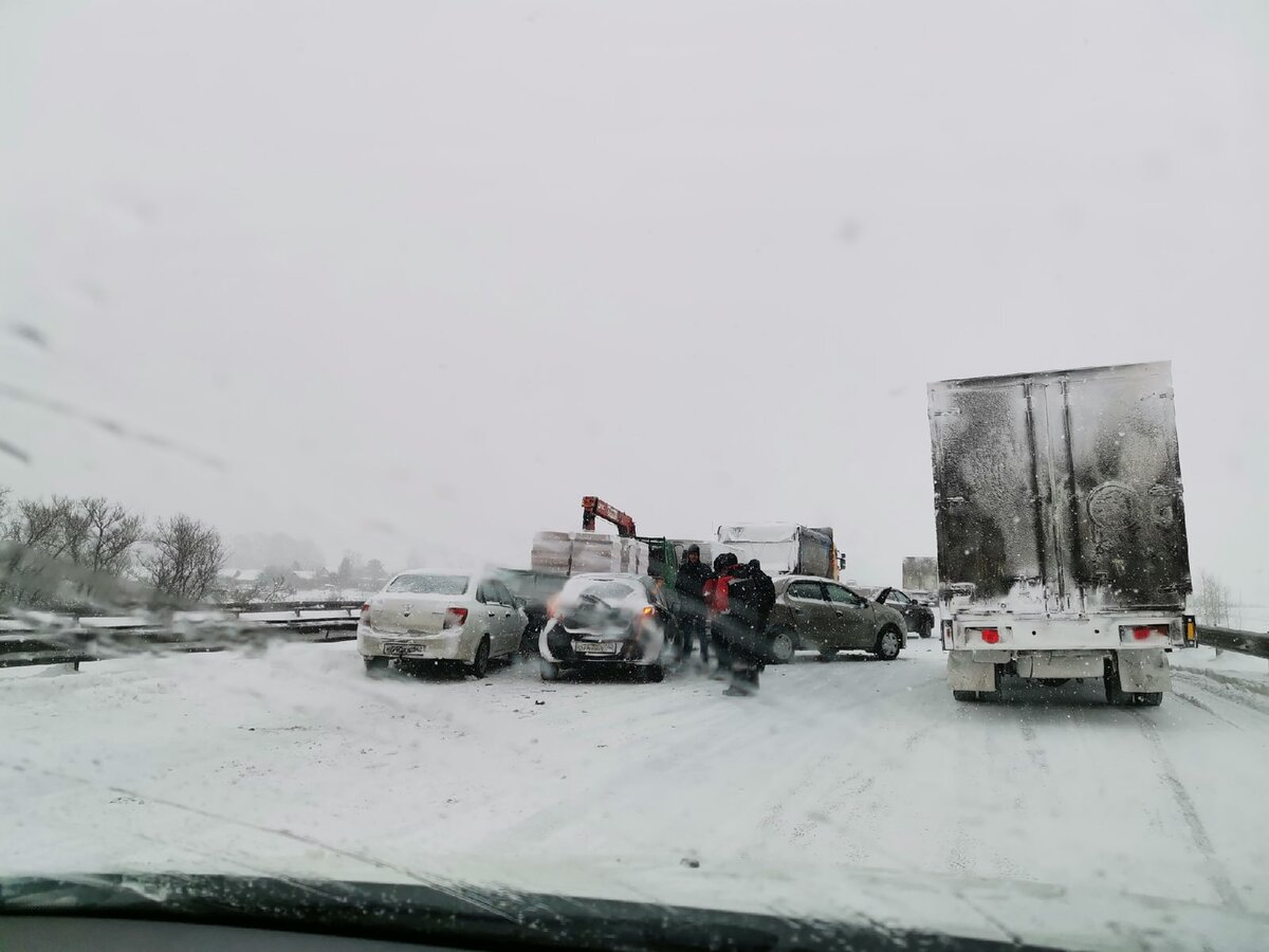 Сложные погодные условия, сильный снегопад, гололедица и усиление ветра до 13-18 м/с стали причиной массовой аварии 27 января на 95 км автодороги Кемерово — Новокузнецк. Пострадало 15 машин.