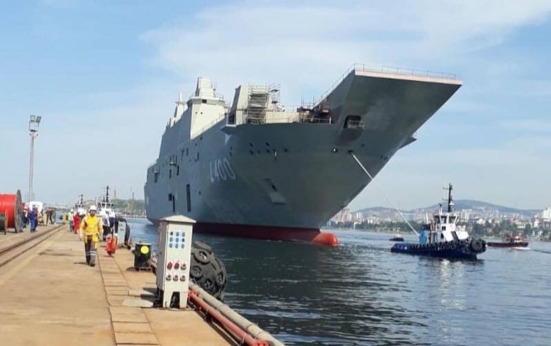 К слову, свой легкий авианосец у Турции уже есть, этот тот самый «корабль-амфибия», как его назвал Реджеп Эрдоган, или универсальный десантный корабль «Анадолу». Технически он представляет собой копию испанского УДК-авианосца «Хуан Карлос I». Тот, в свою очередь, концептуально близок к американским Универсальным десантным кораблям типа «Уосп». Водоизмещение турецкого легкого авианосца составляет 27,7 тысячи тонн. На его борту могут разместиться 12 американских истребителей F-35 и 12 ударных вертолетов NHI NH90, а также БПЛА Anka или Bayraktar. Поскольку формально это десантный корабль, «Анадолу» сможет перебросить до 500 морпехов, а также 46 танков, либо 77 единиц колесной бронетехники. На воду он был спущен в 2019 году.