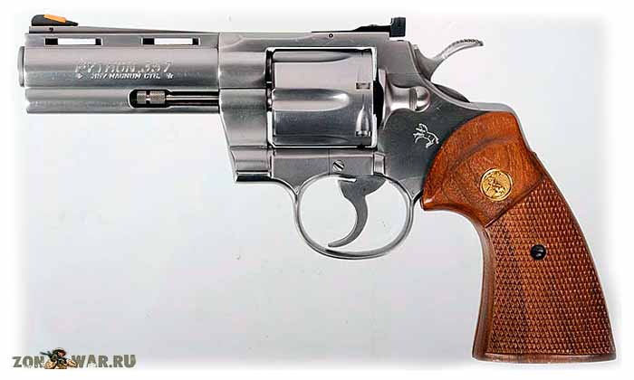 Фирма Кольт начала продажи револьверов серии Python (Питон) в 1955 году. Первоначально эти револьверы были выпущены в варианте со стволом длиной 6 дюймов, позднее были выпущены модификации со стволами длиной от 2.5 дюйма (для скрытого ношения) до 8 дюймов (для охоты и целевой стрельбы). Револьверы выпуска от 1955 года до примерно середины 1960-х годов особенно ценятся до сих пор, так как отличались высоким качеством исполнения и отменной точностью стрельбы. В настоящее время массовый выпуск Питонов прекращен, они выпускаются только штучными мастерскими Colt Custom Shop по индивидуальным заказам, в варианте Python Elite с улучшенной внешней отделкой.