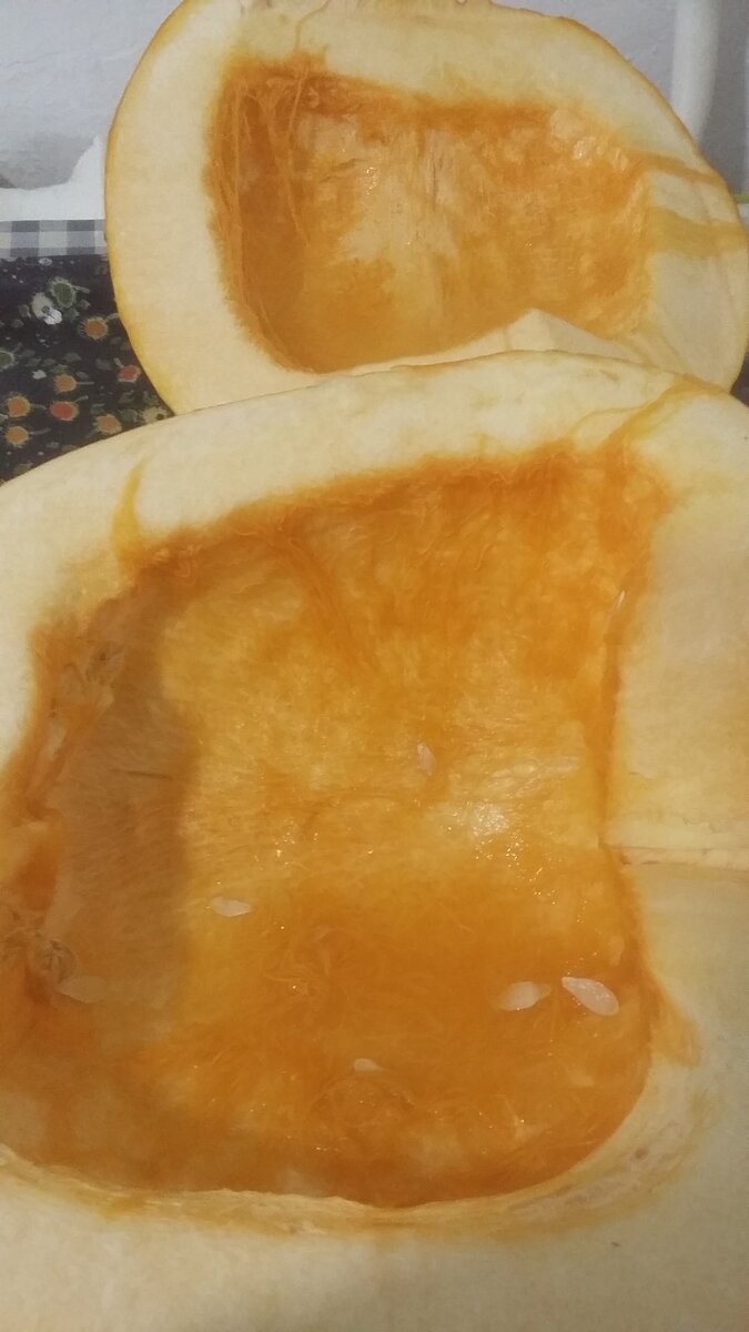 Тыкву как водится не все едаки уважают и лично я был в их заблудшем числе, КАЮСЬ! :( Но однажды отведав этого нежного и душистого тыквенника я совсем уже по другому смотрю на этот странный, загадочный, но очень полезный и душистый круглый овощ. Рецепт оказался очень прост! Очищенные от грубой шкуры две, три солнечные дольки тыквы режут тонкими пластинками примерно в пол сантиметра. Затем их всех в кастрюльку и заливаем 300-400 граммами фильтрованной воды. Далее смело летит в кастрюлю чайная ложка соли и ВНИМАНИЕ! 5 полных столовых ложек приличного сахара. :( Варим при обильном бурном кипении 20-25 минут временами помешивая. ОЧЕНЬ ВАЖНЫЙ МОМЕНТ! Кидаем в бурлящее варево одну четвёртую от стандартной пачки хорошего СЛИВОЧНОГО МАСЛА и при слабом огне перемешиваем до полного его растворения. ВСЁ! Кушать надо это "зелье" только горячим и желательно со сдобной булкой в прикуску. :) Вкусно, жирненько и наверно очень полезно, хоть и немного сладковато! :)