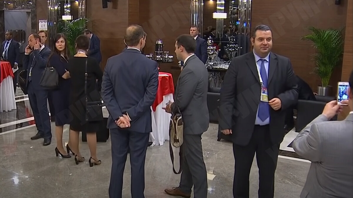 Посмотрите на фотографии. Здесь мы видим некое собрание, неких совсем непримечательных людей. И как-будто , совсем ничего не происходит: гуляют себе люди, общаются, пьют воду... Однако если всмотреться вглубь помещения, в правый нижний угол изображения, можно обнаружить там некоторых весьма и весьма известных личностей.