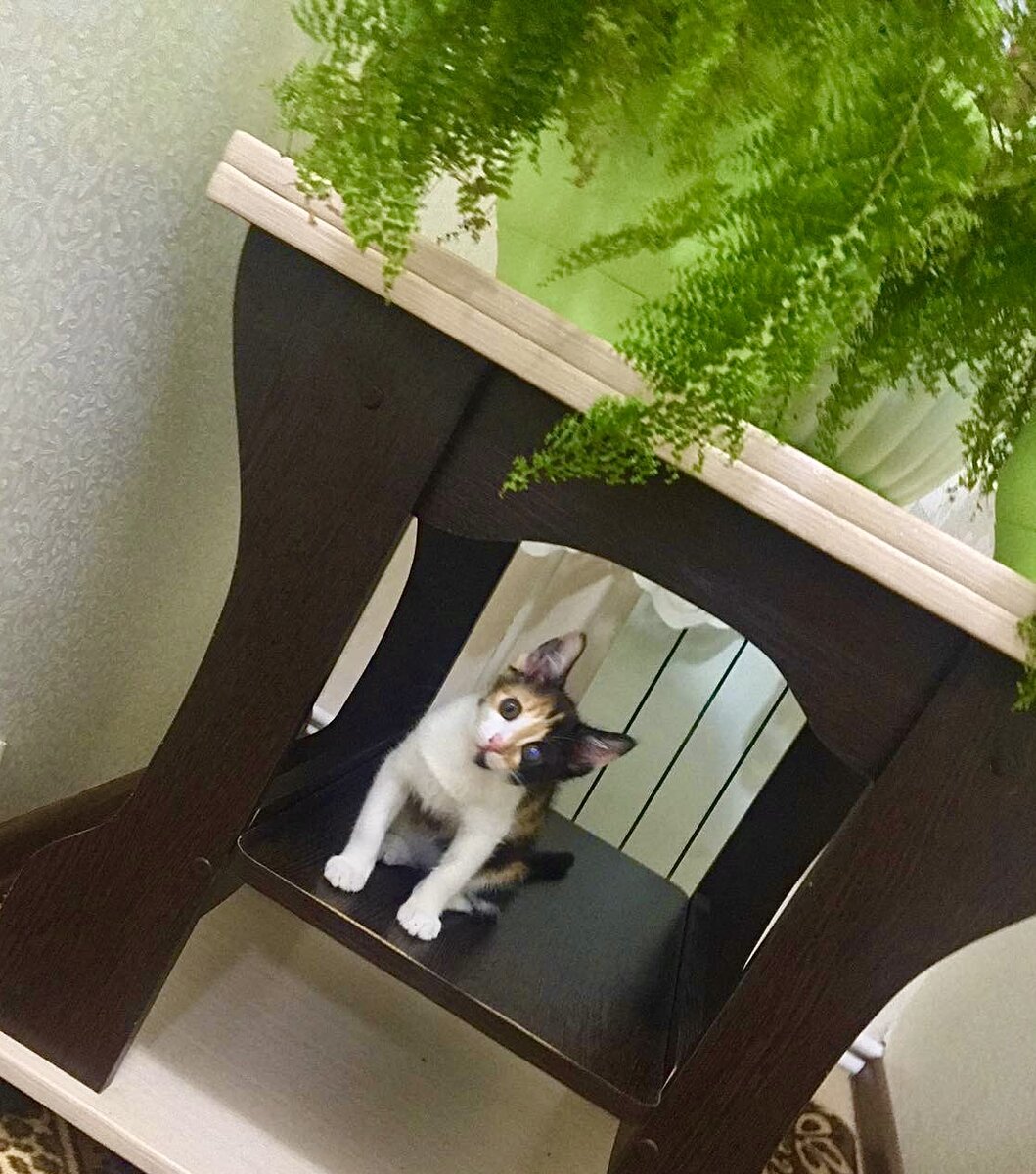 Однажды она попросилась на улицу и пропала. И вдруг вечером, возле поленицы дров мы услышали слабый писк. Заглянули туда, а там новорожденный котёнок, один в один мама, такой же трёхцветный. Котёнок был довольно крупный для новорождённого (наверное потому, что был один).