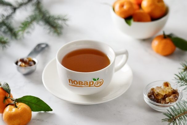 Вода — 800 Миллилитров; Чай черный листовой — 1,5 Ст. ложки; Кардамон — 3-4 Штук; Сахар леденцовый — По вкусу; Мандарины — 3 Штуки; Количество порций: 4