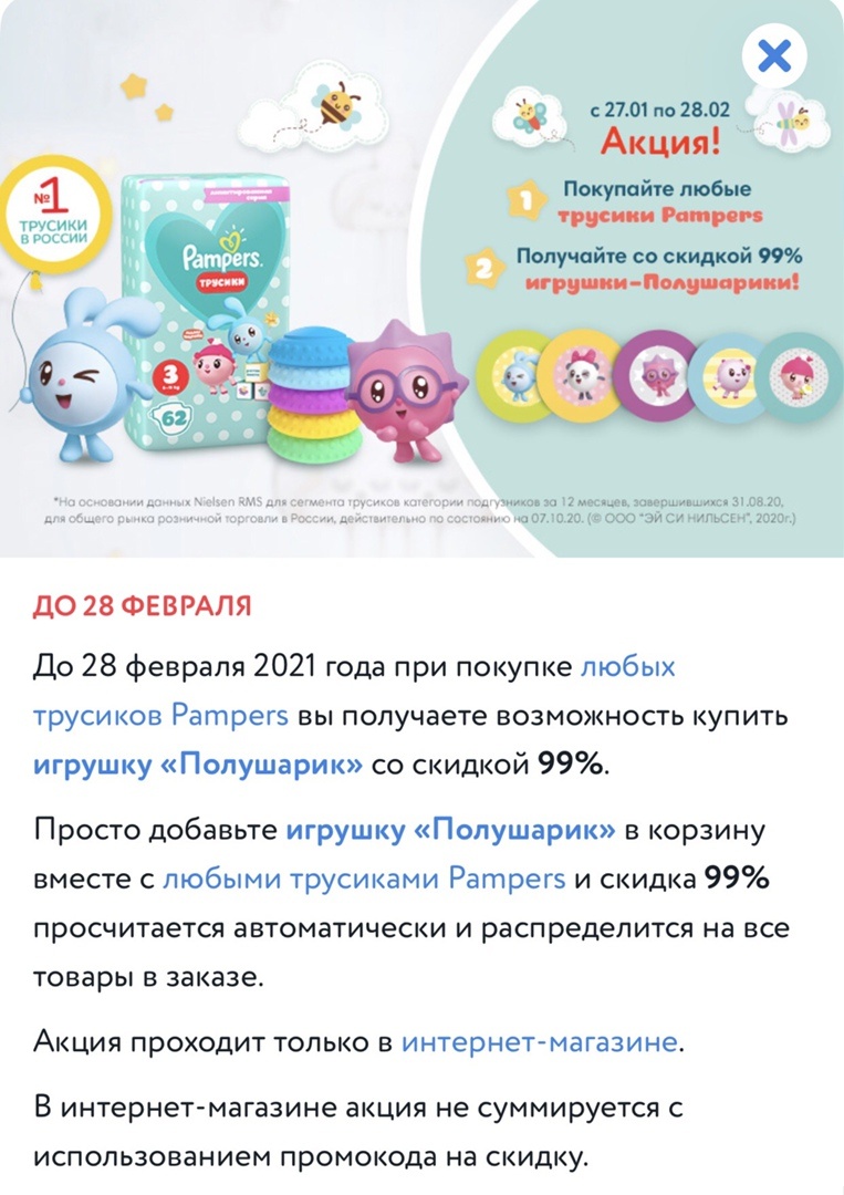 Акция при покупке трусиков Pampers в Детском мире