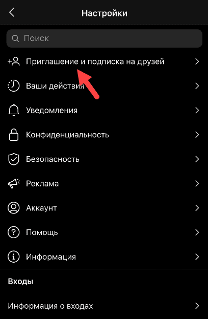 Сразу после регистрации аккаунта, попросите друзей подписаться на ваш Instagram-профиль. Таким образом, вы наберете первую аудиторию — полностью без вложений. Пригласить друзей подписаться на аккаунт можно из приложения. Для этого откройте настройки и перейдите в раздел «Приглашение и подписка на друзей».