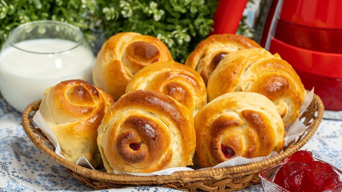 📃Ингредиенты на рецепт булочек с джемом: