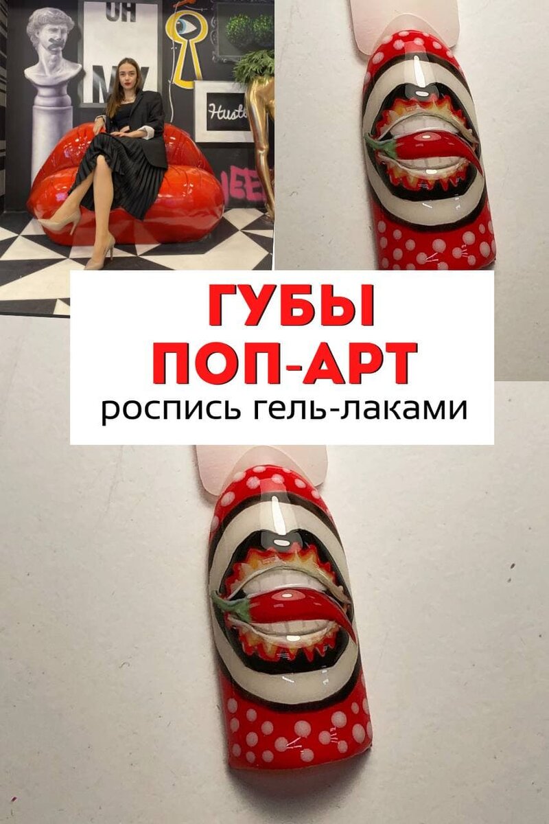 Роспись ногтей гель-лаком в стиле поп-арт. Самый популярный рисунок в стиле Pop-Art, который вы можете встретить - это губы, не так ли?
