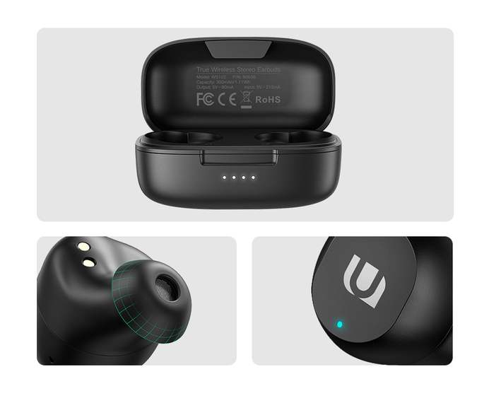Наушники выполнены качественно, принадлежность к UGREEN напечатана лаконично первой буквой бренда — U. В нижней фронтальной части располагается диод состояния.Под диодом на боковой части микрофон. На внутренней части двух-контактный разъём для зарядки, маркировка наушника L|R. Воздуховод защищён сеточкой от мусора. Не совсем понятен ход производителя-фреза на воздуховоде-стандартные насадки –не подойдут-только комплектные. По удобству — не выпадают, не мешают, для прослушивания в «лежачем/засыпающем» состоянии – не подходят.