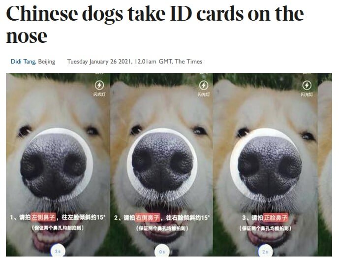В городе Ханчжоу в пилотном режиме запустили проект регистрации домашних собак с использованием технологии распознавания отпечатков носа.