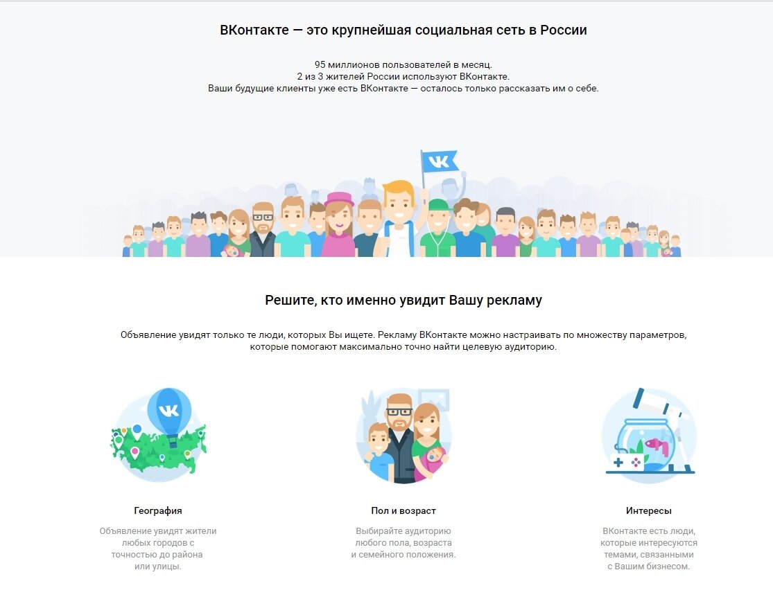 Аудитория более 130 000 000 человек, из которых ежедневно «ВКонтакте» посещает около 60 000 000 человек. У Вас появляется возможность охватить максимальный круг