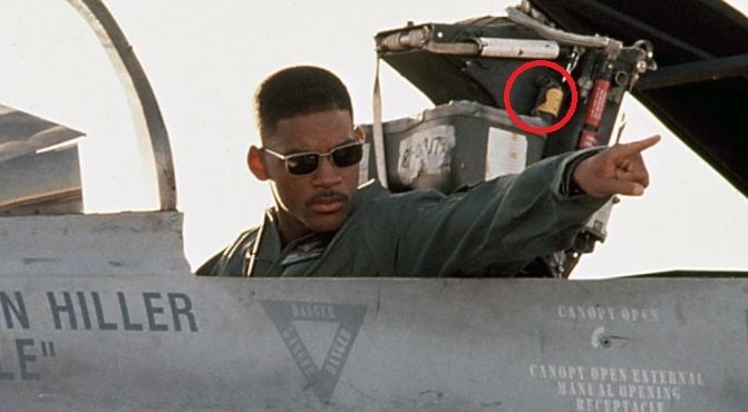Как в любом фильме тут присутствует много пасхалок, отсылок, киноляпов да и просто интересные детали на которые при первом просмотре не обращаешь внимание, потому что в основном мы концентрируемся на сюжете фильма и на главных персонажах, но зачастую не обращаем внимание на задний фон в котором порой скрыто очень много интересных деталей.В прошлом кадре можно заметить какую то необычную деталь желтого цвета ,дела в том что в момент съемки конструкция на которой все держится сломалась и дабы не потерять съемочный день ,было решено ,из подручных сделать что то вроде держателя.а сама сцена происходила очень быстро ,что конструкция не обрушилась на Уила Смитта ,но помимо этого в фильме еще куча интересных деталей