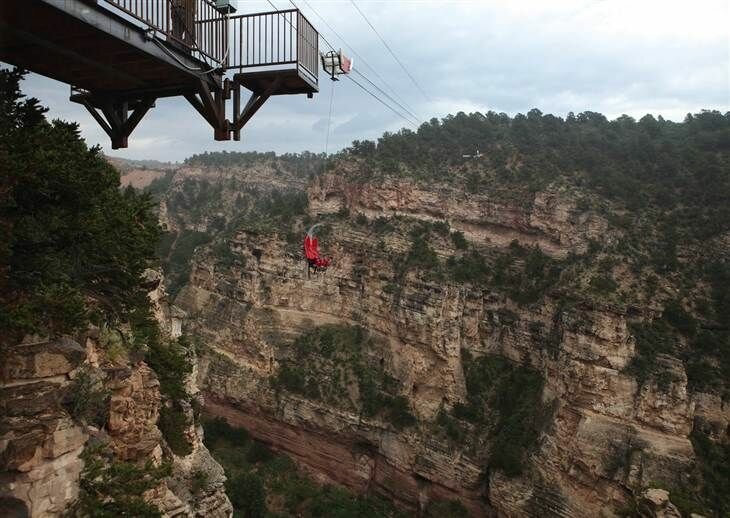 Это экстремальное место находится в пещере Винс Маунтин парк в Маниту Спрингс Каларадо. Падение заставит вас смеяться и кричать одновременно! Для начала вы будете подняты на огромную высоту на край скалы, а затем пуститесь в полет на скорости около 100 миль в час. Аттракцион абсолютно безопасен. Так как надежные крепления не дадут вам выскользнуть в момент эмоционального