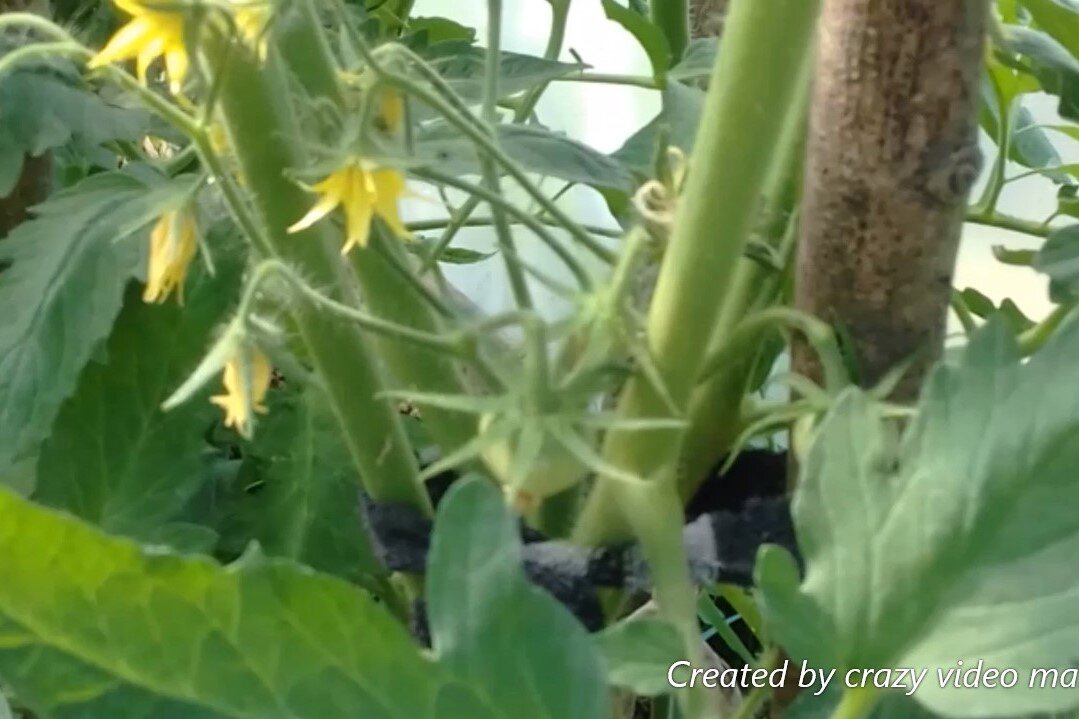 5) Когда макушка дорастет до крыши, я прищипываю. Просто обламываю макушку под крышей. Делаю это для того, чтобы все питание уходило на плоды.