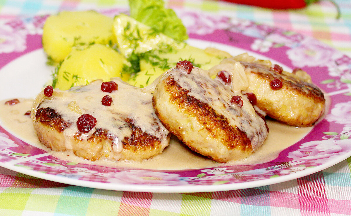 Подавайте с отварным картофелем, картофельным пюре или отварными крупами.