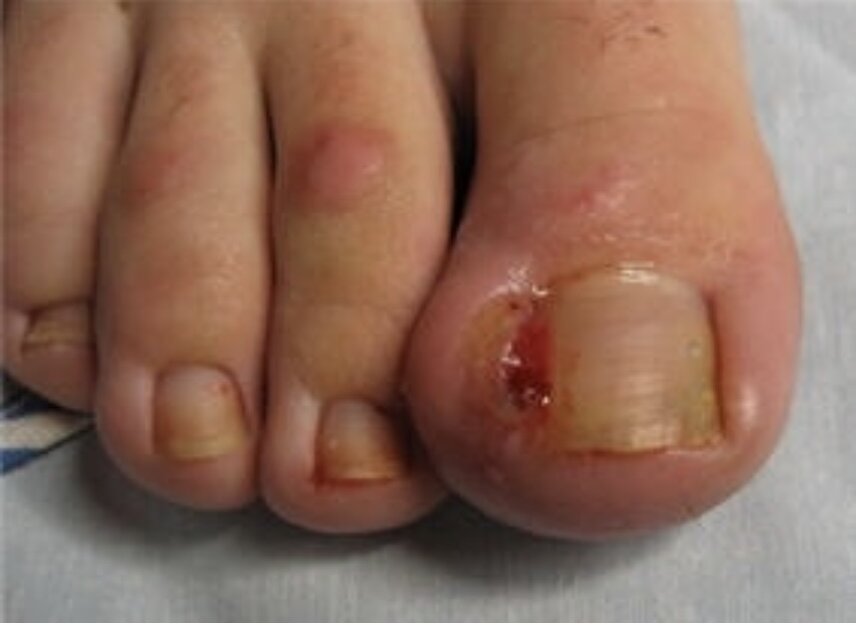 Начиная с двух-трёх недельного возраста, внимательная мама может заметить покраснение на маленьких пальчиках возле ноготков, что служит сигналом о начале местного воспалительного процесса.