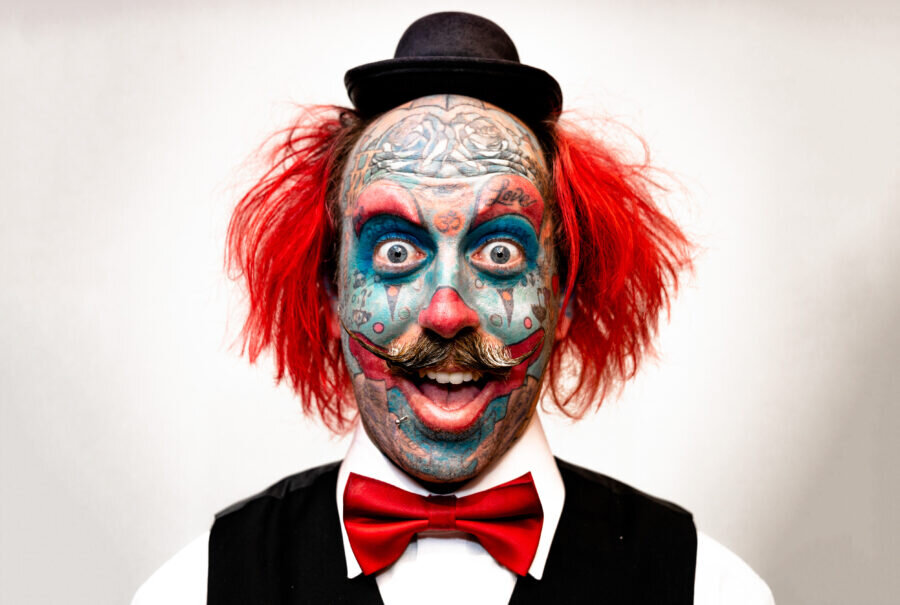 «Я не просто выгляжу как клоун. Я и есть клоун – жонглирую, катаюсь на одноколесном велосипеде, делаю фокусы. Это мой образ жизнь. Мир, который я создал.