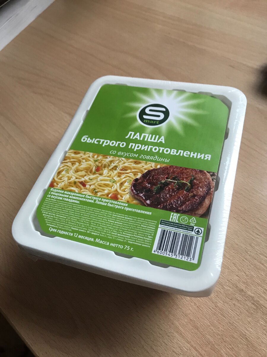 Привет. Сегодня я приобрел в магазине EUROSPAR себе лапшу быстрого приготовления со вкусом говядины бренда SMART. Судя по всему этот бренд тоже относится к сети этого магазина, потому что я видел на полках разную продукцию под брендом SMART.