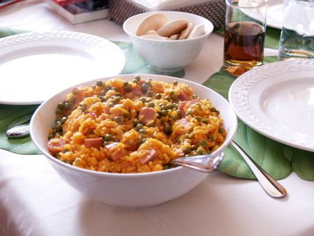 10) После того, как рис готов, добавьте банку гороха, перемешивая его с приготовленным рисом - оставьте на минуту или две, пока горох не станет горячим.