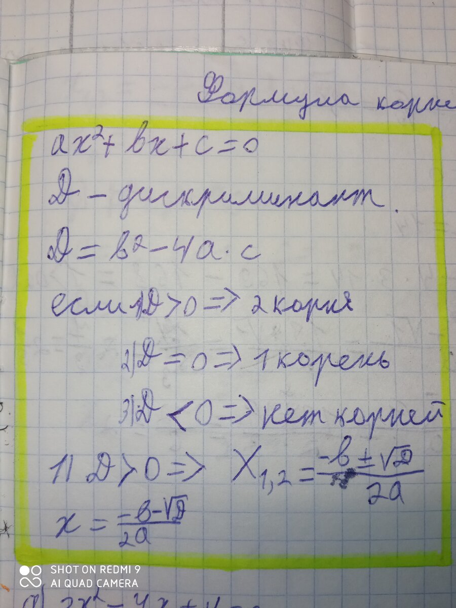 Кто-то попробует "защитить" написанное в тетради ученика (фото 1) тем, что в 8 классе не изучаются комплексные числа. Однако понятие числового множества даётся перед темой "Квадратное уравнение". Именно здесь и можно упомянуть о том, что помимо действительных чисел есть комплексные. Замечу, что по некоторой информации, опубликованной в интернете, возможно изменение содержания экзамена по математике за 11 лет обучения в школе. И это изменение связано, в частности, с введением в экзаменационные материалы задания по теме "Комплексные числа". Если ученик продолжит образование в 10-11 классах, то тогда-то и вскроется вся нелепость записей в рамочке.