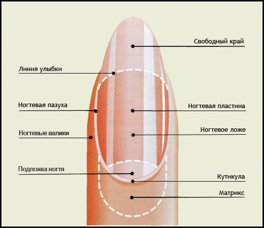 - Ногтевое ложе. Ногтевое ложе защищено от возможных повреждений и инфекций кожным валиком, или кутикулой.