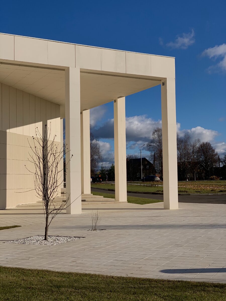 Немного об архитектуре: пространство музея состоит из 8 "плавающих" объемов, объединенных единым фойе. Каждый объем наделен своей функцией. Такая идея разнообразила внешний контур и сделала музей сомасштабным окружению. По контуру объемы объединены колоннадой, что создает ощущение проницаемости и открытости музея внешней среде.