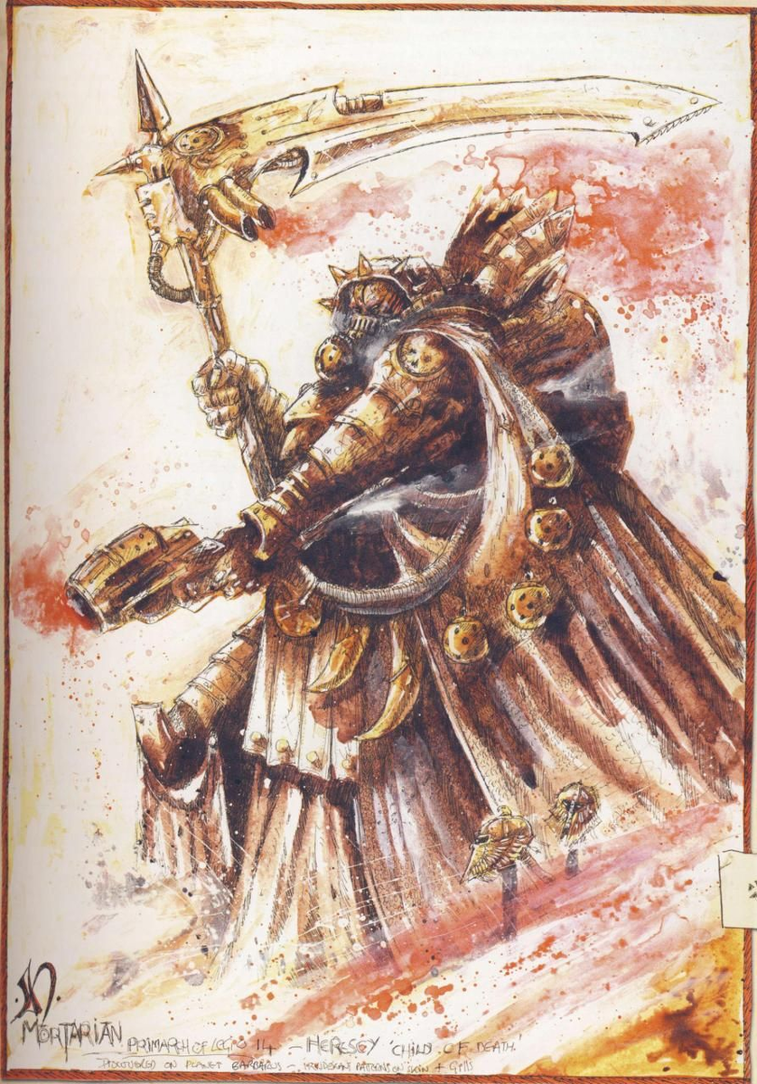 Зловещий и скрытный Мортарион был примархом Гвардии Смерти. Он вырос на кошмарном мире, полном тёмных тайн и загробного ужаса, где на людей охотились, словно на зверей. Мире, чья тьма проникла в душу примарха и там и осталась. Полный решимости и безжалостный жнец-примарх превратил свой легион в яростных освободителей, призраков смерти и возмездия, для которых не было непреодолимых преград и слишком ужасных врагов. Ложью и полуправдой Гор убедил Мортариона примкнуть к себе, за что XIV легион заплатил ужасающую цену, навсегда потеряв себя в служении зловещим силам Хаоса.