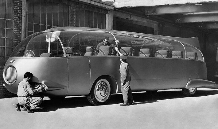 Творение компании произвело фурор. Ранее подобных вещей еще никто не производил. Да и в наше время подобных автобусов нет. Автобус похож на ракету. Круглые формы, панорамная крыша, и