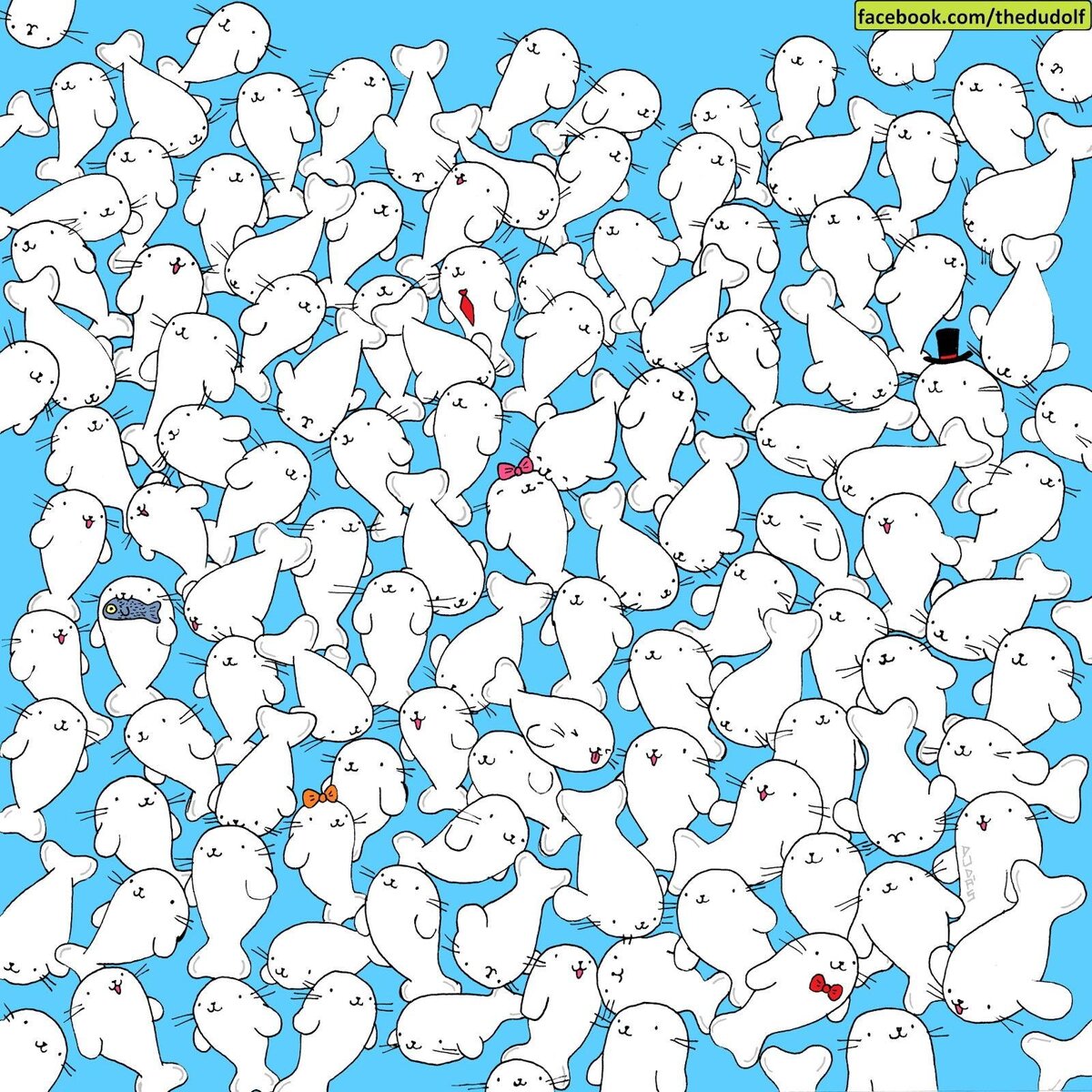 1. Среди тюленей художник спрятал маршмэллоу. Нашли?)