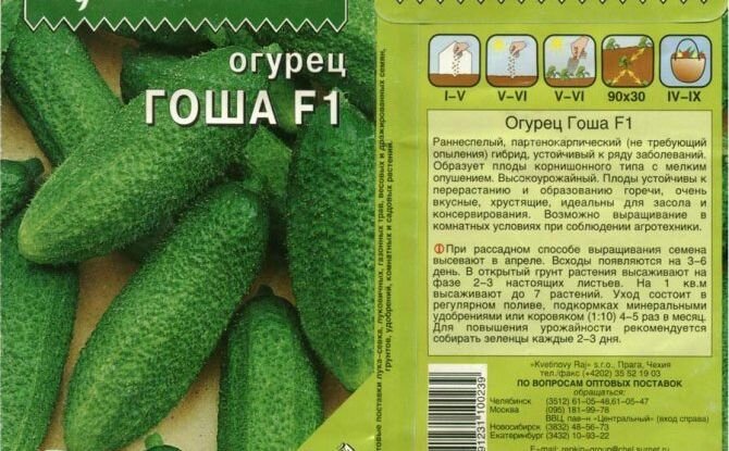 Гибрид считается ультраранним – и правда, первые зеленые корнишончики можно срывать через 38 дней после появления всходов. А всходят семена огурцов очень быстро – буквально через несколько дней после посева. Вырастает куст этого гибрида небольшой и компактный – что очень удобно. Кстати, он прекрасно подходит и для выращивания зимой дома на подоконнике. Плодики вырастают небольшие – не более 12 см, весят примерно 100-110 г. Форму имеют в виде цилиндрика с кожицей темно-зеленого цвета. И отменного вкуса! Завязываются эти плоды непрерывно, в результате урожай всегда радует. Применение их универсальное – хоть в свежем виде, хоть в любой вид консервации пойдут. Устойчив этот гибрид к большинству огуречных болезней. Выращивать можно как в ОГ, так в теплице, он не нуждается в опылении пчелами.