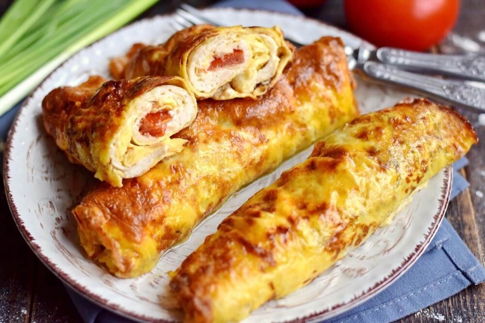 Начинку третьего рулета можно дополнить несколькими дольками помидора.