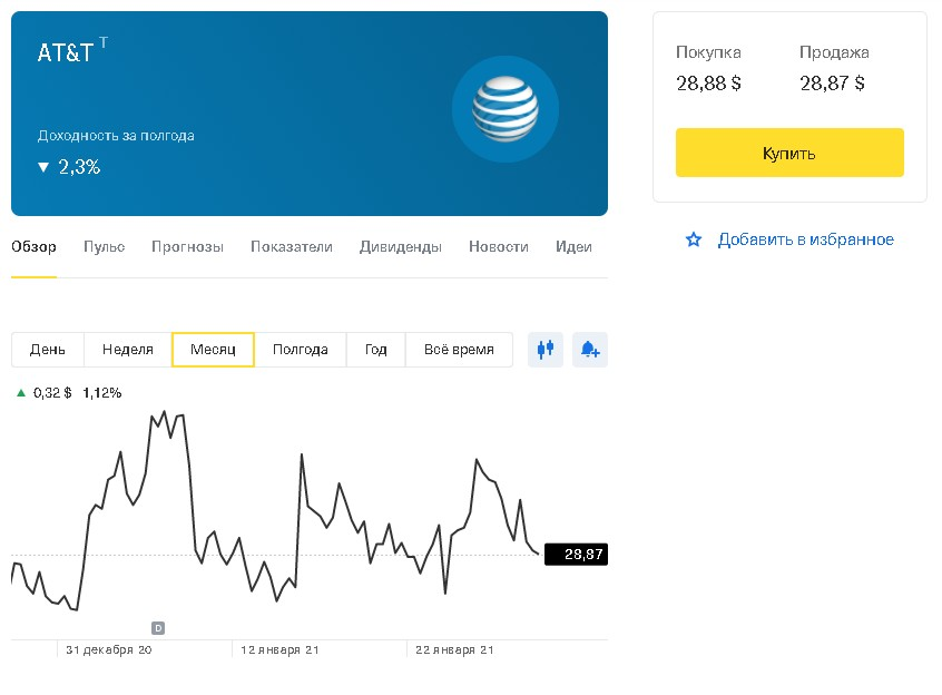 Разберем на примере акций AT&T