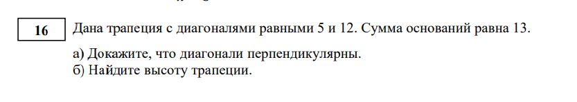 А теперь вспоминаем, что сумма оснований равна 13, т.е.