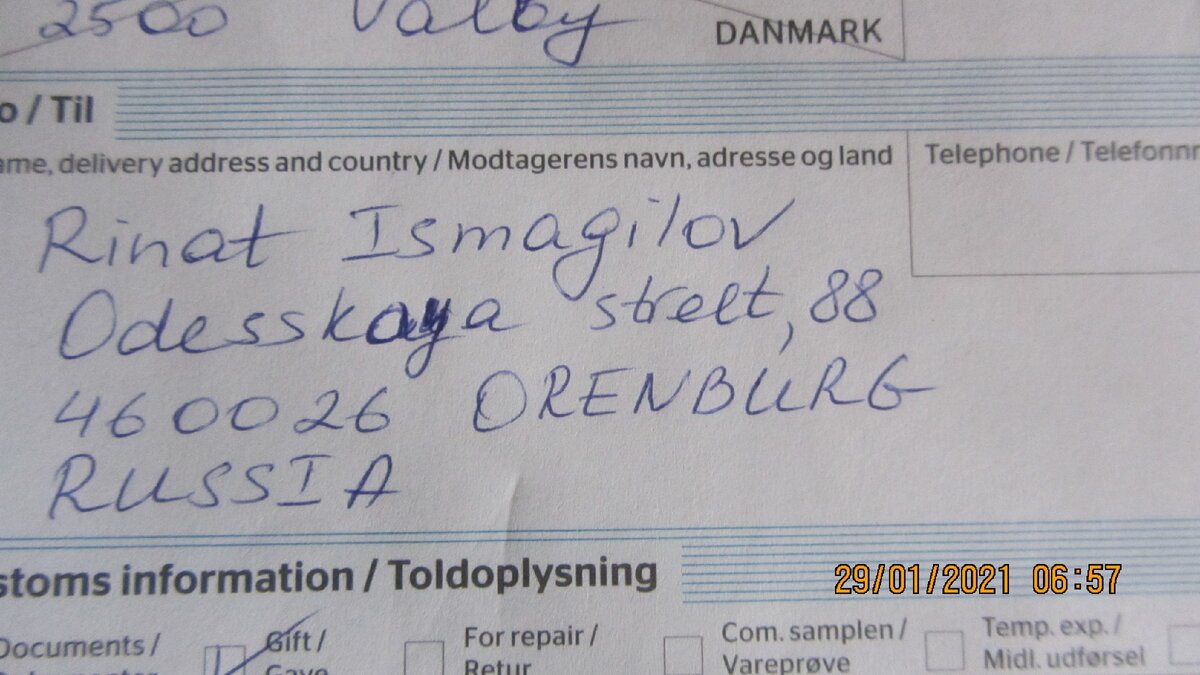 Где и кем сделан этот странный перевод фамилии и адреса с латиницы на кириллицу ? Похоже что в этом участвовали два человека. Один из них или слабовидящий или с серьёзными дефектами речи диктовал, а другой - слабослышащий -записывал. Более вероятная версия - это злой умысел : захотелось хорошего сыра и шоколада - вот черт и попутал. Улицы Кадетской в г. Оренбурге не существует и искать на ней некоего Измаилова можно достаточно долго , для того чтобы признать адресата выбывшим . Возвращение посылки в Данию не предусмотрено (очень дорого оплачивать доставку в оба конца), поэтому посылка остаётся на почте России и согласно инструкции утилизируется. А в этой этой посылке , которую так старательно пытались потерять , было что утилизировать.