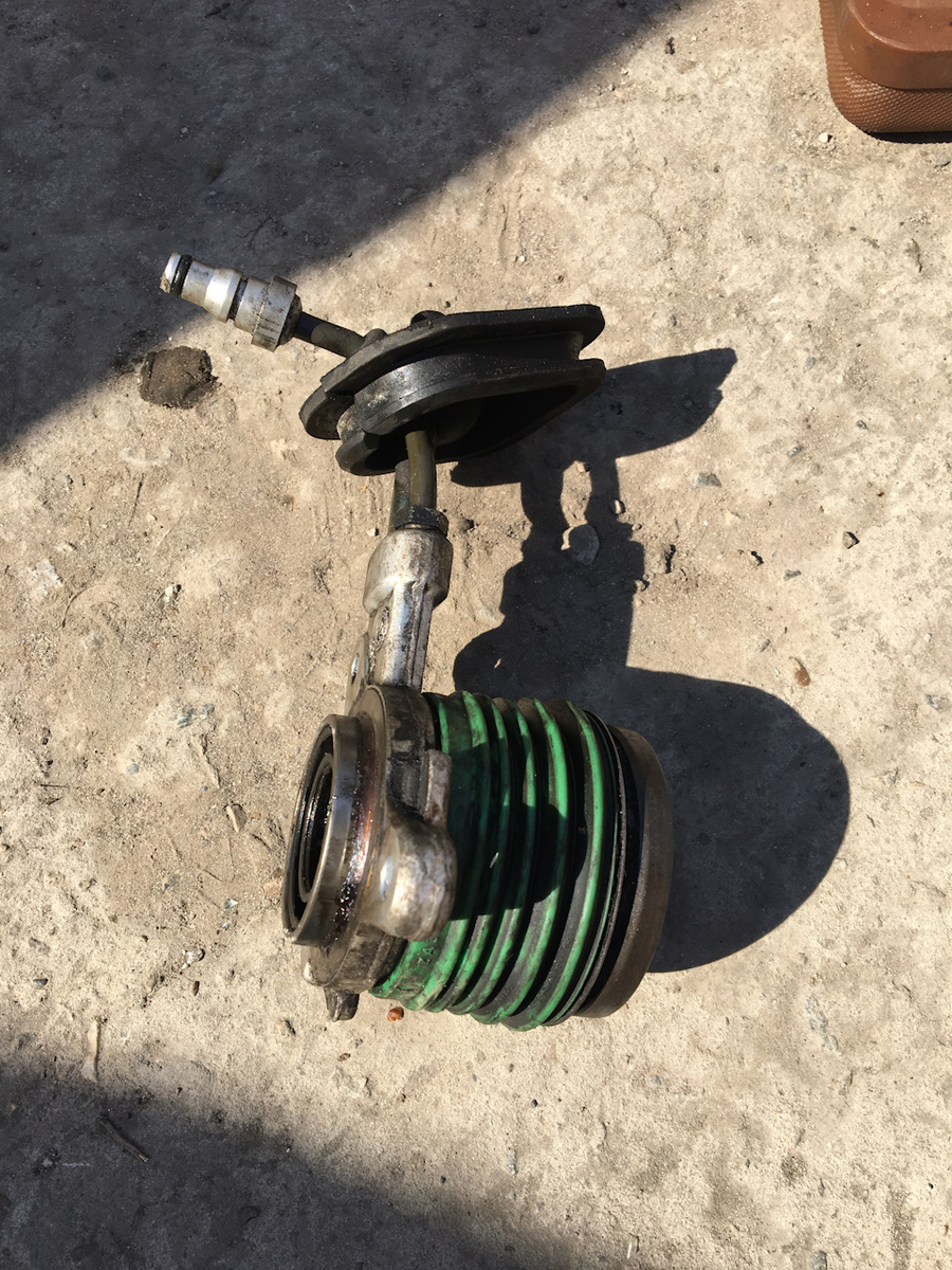 его же я и хотел поставить к себе. Но — увидел, что на выжимном, который пришел с новой коробкой, есть некая пружинка. O_o А у меня такого не было! Начался поиск по ффклабу, на котором сообщили, что пружинка 100% должна быть. Ну хз, доверимся людям, оставим тот, что мне прислали и тут проявляется новый факт — выжимной что мне дали не подходит штуцером к патрубку (к сцеплению). Изучаем ситуацию и выясняем, что коробка оказывается от мондео (ну и выжимной тоже оттуда) O_o