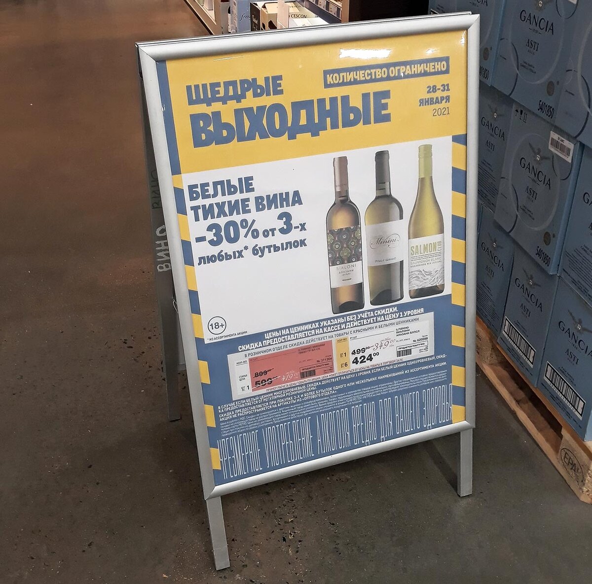 Участвует любое тихое белое вино, то есть не игристое. На промо-ценники скидка действует как дополнительная.