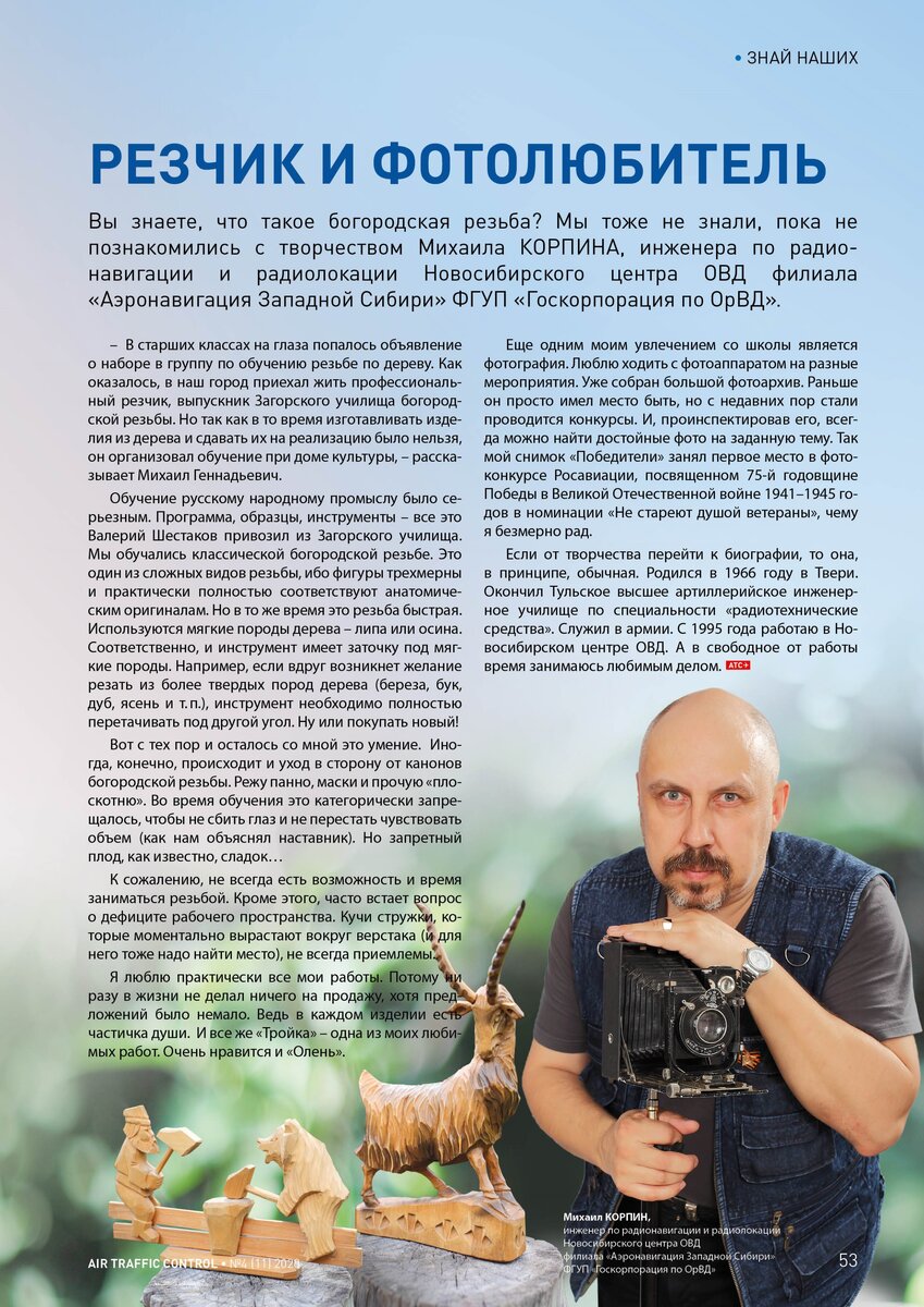 Материал из журнала Air Traffic Control о творчестве инженера по радионавигации и радиолокации Новосибирского центра ОВД филиала «Аэронавигация Западной Сибири» ФГУП «Госкорпорация по ОрВД» Михаила Корпина.