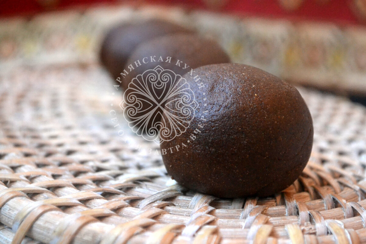 Развести в теплой воде дошаб и мед, добавляем эту понемногу к похиндзу и месим тесто, должна получиться однородная эластичная масса. Скатать шарики. Десерт готов. Можете обвалять в орехах, можно подавать не шариками, а как пирог, это вкусно в любом случае. Если дать клондраку настояться, то он пропитается как следует дошабом и медом. Только накройте чистым полотенцем.