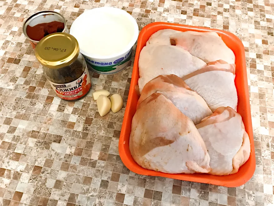 - 1 кг куриных бедрышек (в принципе, любые части подойдут);